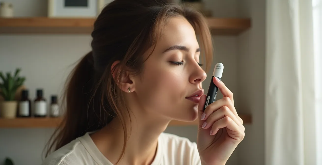 Cet article va au-delà des listes d’huiles essentielles pour décortiquer le mécanisme d’action de l’olfactothérapie d’urgence. Nous analyserons pourquoi l’inhalation sèche est la voie royale pour calmer une crise, comment l’utiliser de manière pratique et discrète, et comment éviter les erreurs courantes qui peuvent non seulement être inefficaces, mais parfois dangereuses. En comprenant la science derrière l’odeur, vous transformerez un simple flacon en un outil de régulation nerveuse puissant et nomade.